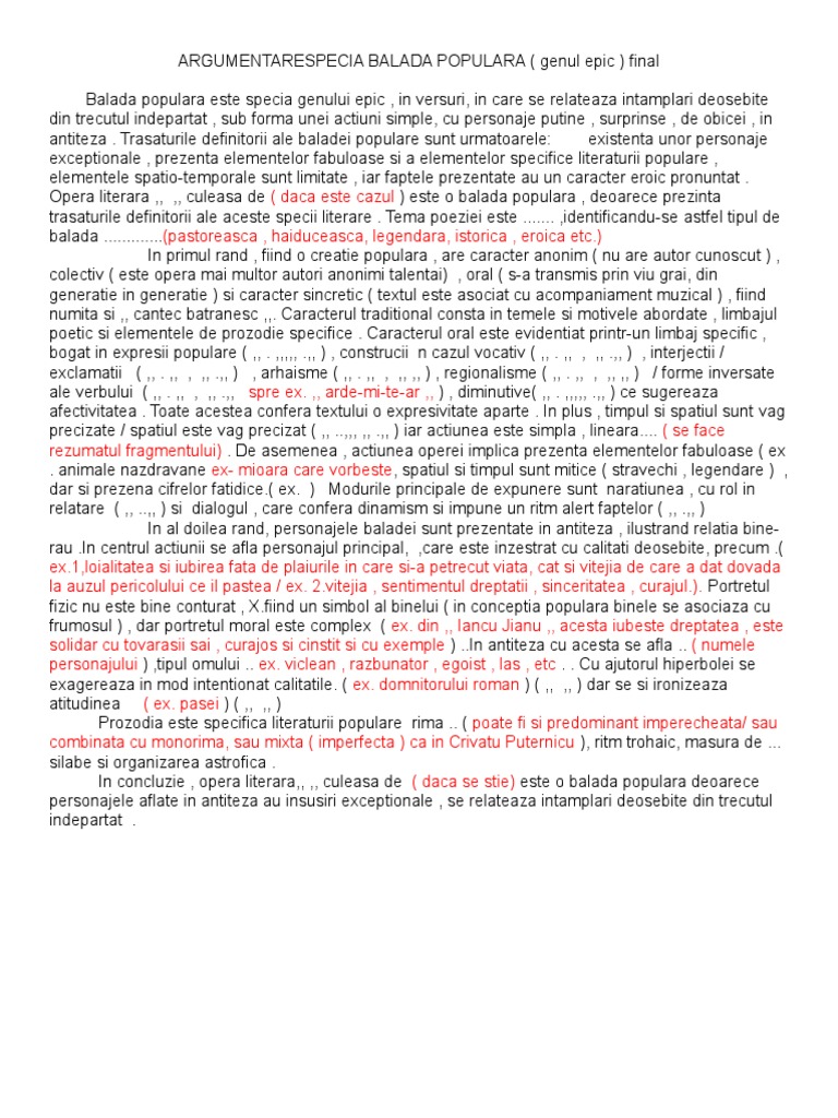 Argumentare Balada Populara
