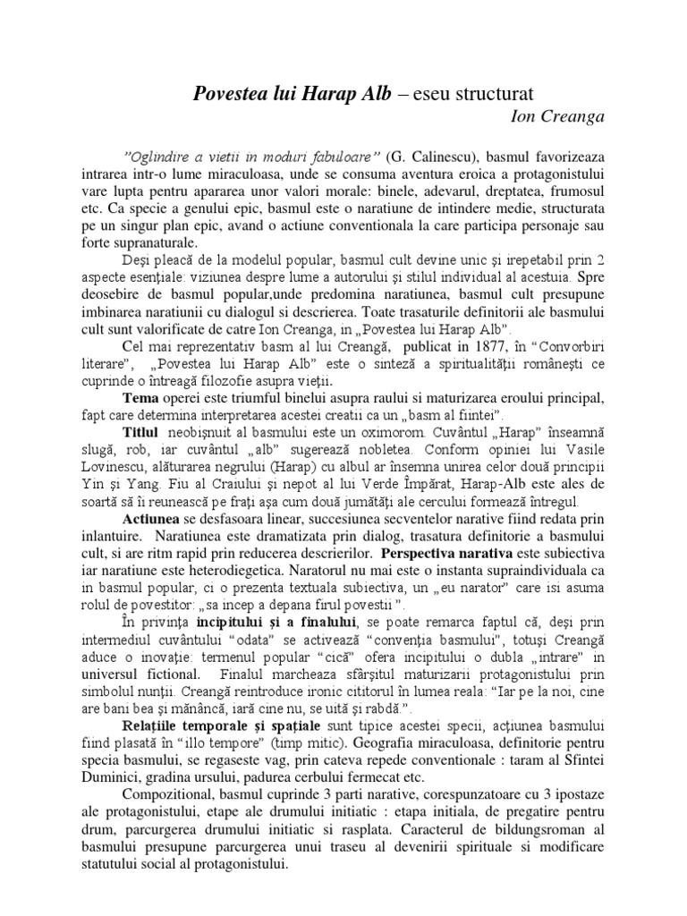 Subiecte Bac Povestea Lui Harap Alb