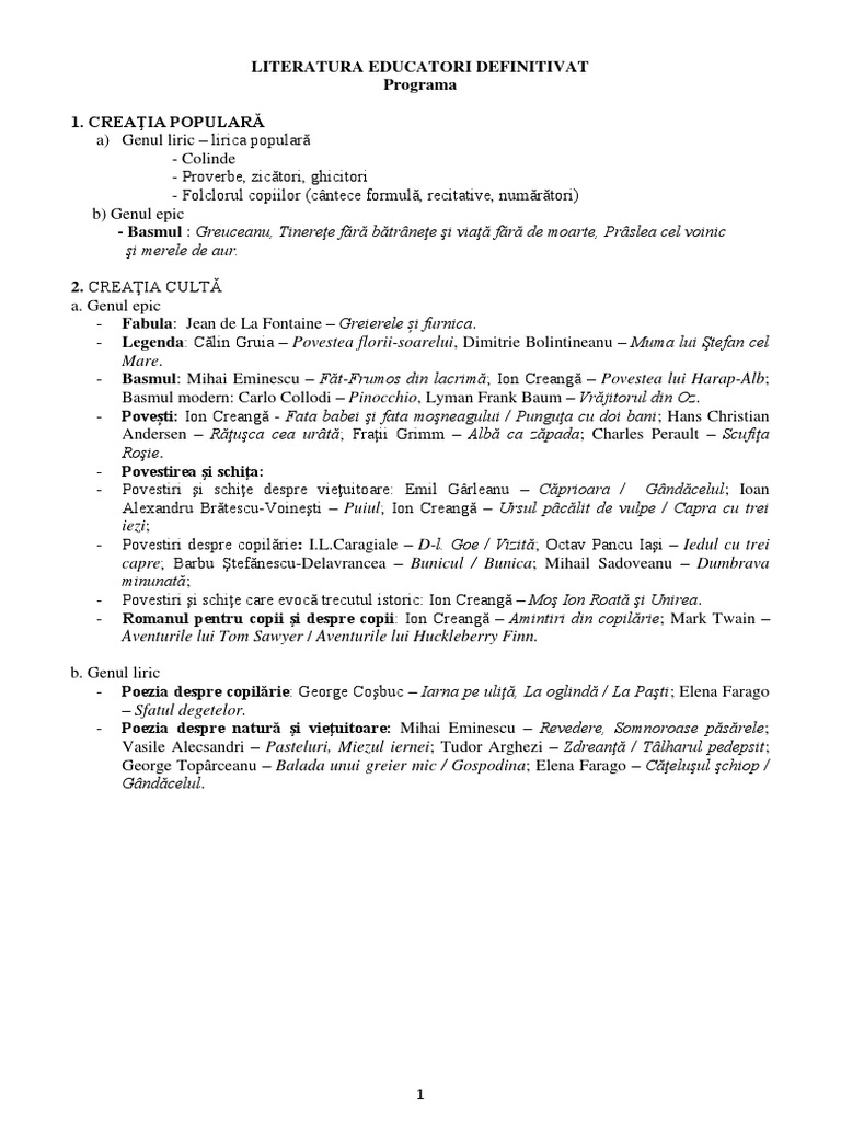 Doc Literatura Educatori Definitivat Specii Literare Creatia Populara Lavinia Negru Academia Edu