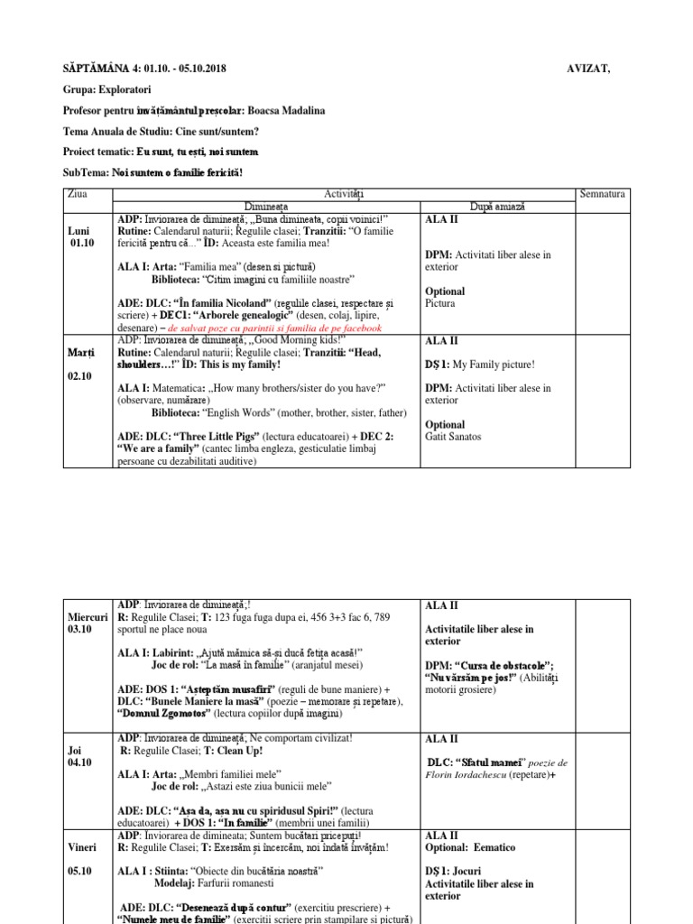 S4 Eu Sunt Tu Ești Noi Suntem Familia Mea Fericita Planificare Grupa Exploratorilor