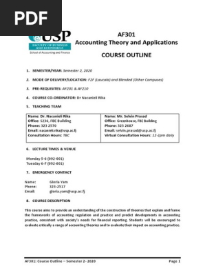 Af301 S2 2020 Course Outline V1 Pdf Test Assessment Theory