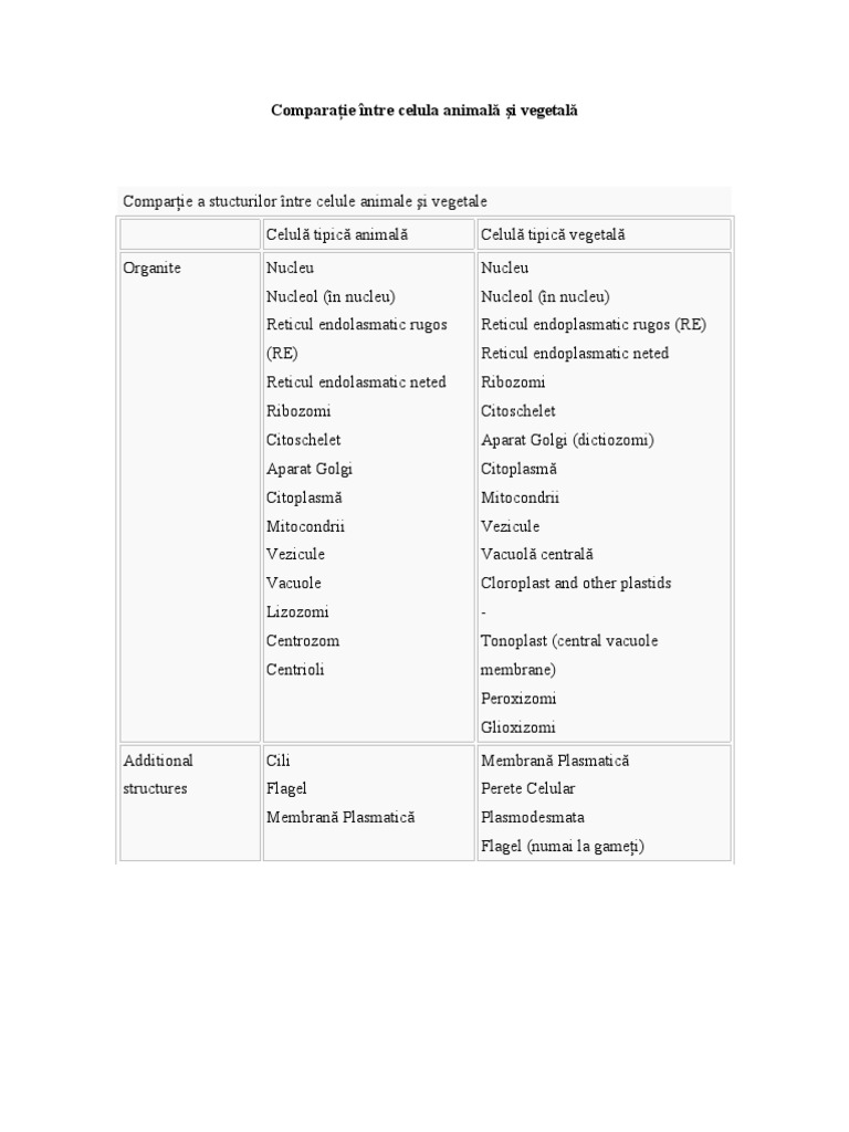 Asemanari Si Deosebiri Intre Celula Vegetala Si Cea Animala