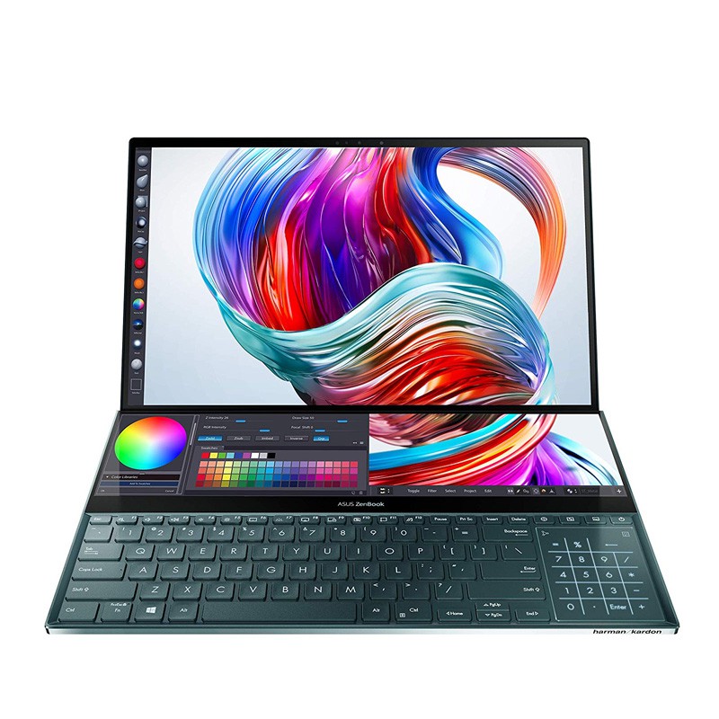 Asus zenbook pro duo ux581 15 6 4k uhd nanoedge bezel touch intel core i9 9980hk 32gb ram 1tb pcie ssd geforce rtx 2060 innovative screenpad plus windows 10 pro ux581gv xb94t celestial blue screenpad plus 14 inch 4k matte touchscreen enjoy endless ways to optimize your multitasking experience by extending the screen. Asus zenbook pro duo ux581gv h2036t laptop celestial blue rp41 799 000. Nvidia geforce rtx 2060 ram. 2 4ghz intel core i9 9980hk octa core 16mb cache up to 5ghz graphics.