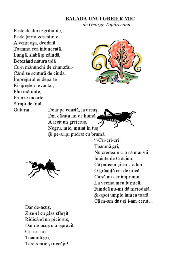 Balada Unui Greier Mic De George Toparceanu Kidibot Bătăliile Cunoașterii